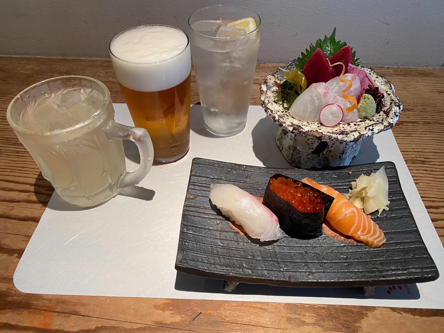 お造りorお鮨と1ドリンクセット1,000ドリンクは3種類から選んでください!